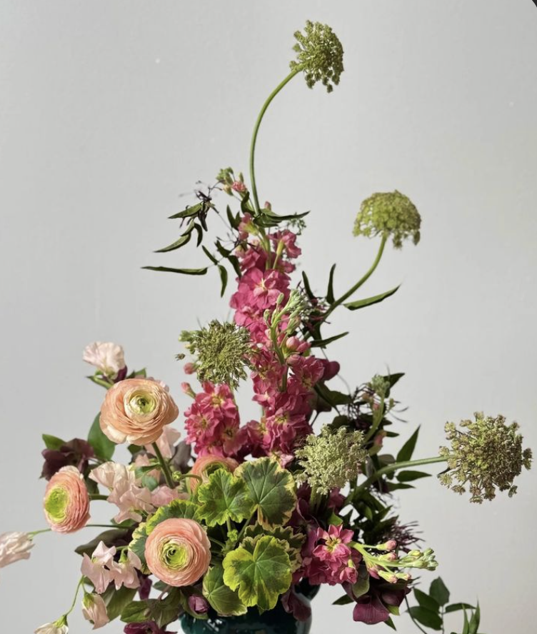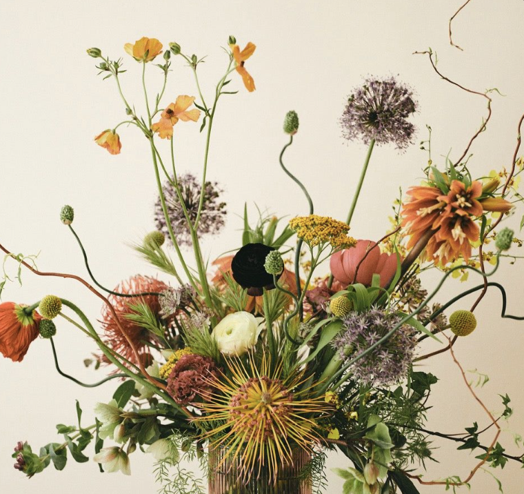 Abundant and graceful, a unique lush composition of the season’s freshest blooms. Presented in a leaf-lined clear glass cylinder vase.